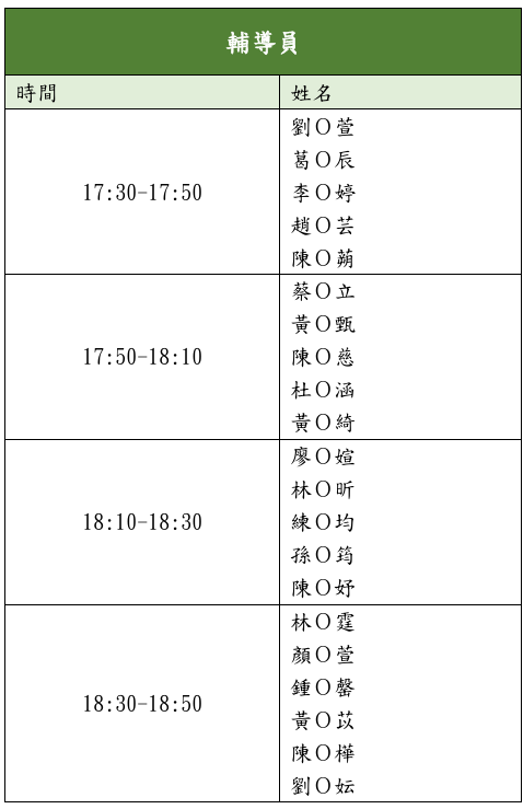 時間:請依下方表格為準