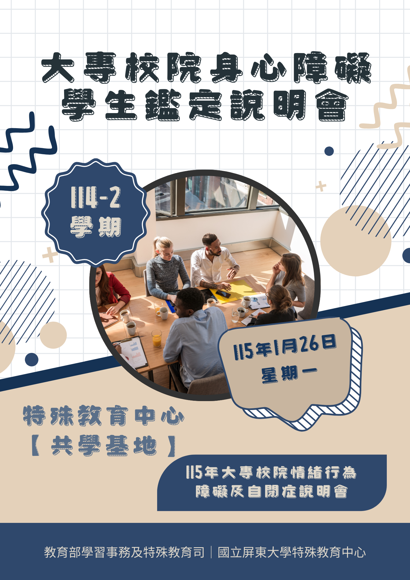 【歡迎參加】114 學年度第 2 學期屏東鑑輔分組大專校院身心障礙學生鑑定說明會